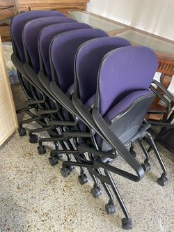 Set of 6 Quality Rolling Nesting Office Chairs, Purple. 🚚 extra$250Milwaukee, WI