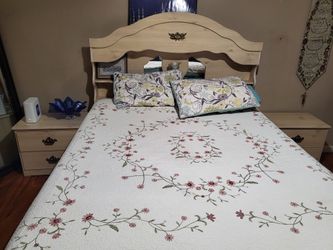 Queen Size Bed Frame Railing Box Springs Matress 2 End Tables $100Fresno, CA