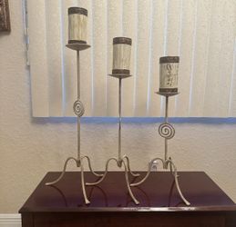 Antique Decorative Iron Candlestick Holders with Candles Set Of 3$45Pompano Beach, FL