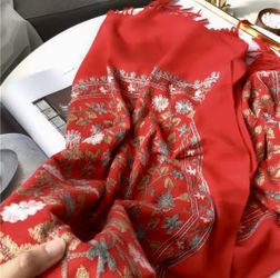 Shawl Plants Embroidery Double Sided Scarf, Casual Soft Warm Fringe Trim Shawl for Women & Men,$15Lake Forest, CA
