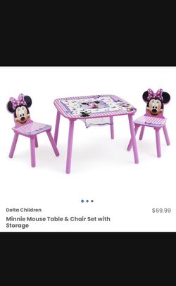 Minnie Mouse kids table with 2 chairs/ toy storage$50Cypress, CA