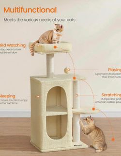 Cat Tree, 44.1-Inch Cat Tower for Indoor Cats, Multi-Level Cat Condo with 4 Scratching Posts, 2 Perches, Hammock, Cave, Beige UPCT261M01$25Rancho Cucamonga, CA