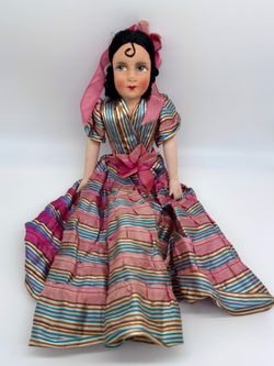 Antique Cloth Boudoir Doll Hand Painted Silk Face Senorita Flamenco Dancer EUC$100California City, CA