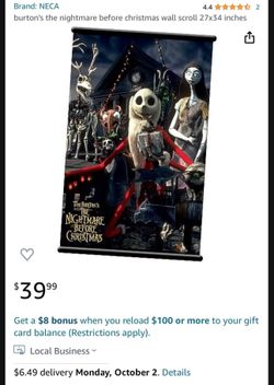 NECA Tim Burton’s The Nightmare Before Christmas Wall Fabric Scroll 27x34 inches$10Ontario, CA