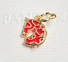 Pandora 14k Gold Plated, Red Fire Horse Dangle Charm #764431C01 ~ FREE Pandora Gift Box + Tag $50Rancho Cucamonga, CA