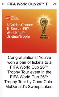 World Cup Tickets To See Trophy$500Pico Rivera, CA