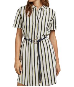 TED BAKER London White Dark Navy Olive Striped Short Sleeve Shirt Dress Womens 1$40Chino, CA