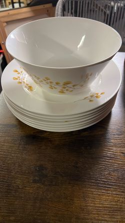 Seven 11.5” Martha Stewart Maidenhair Fern Yellow Dinner Plates Plus One 9” Salad Bowl$5Oak Park, IL