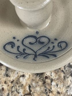 Maple City Pottery Candle Holder Monmouth Illinois Blue Heart Design Salt Glaze$22Middle River, MD