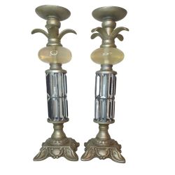 Vintage Pair Of Deco/Hollywood Regency Ornate Resin Glass Pillar Candle Holders$50Goodyear, AZ