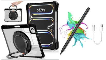NEW Transparent iPad Pro 11 2024 M4 Case. 360° Rotating Kickstand w/stylus holder. blk stylus pencil$15New York, NY