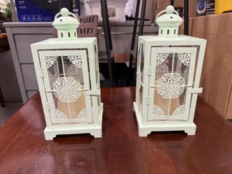 Set of 2 Light Green Metal Lanterns with Candles and mirrors$40Meriden, CT