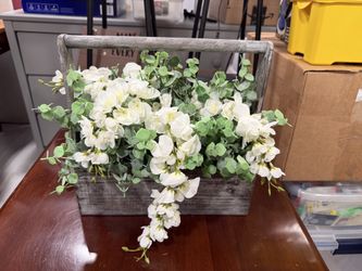Faux White Flower Arrangement in Wooden Tote Basket$20Meriden, CT