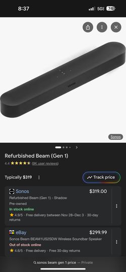 Sonos Beam Gen 1$200Brooklyn, NY