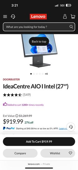 Lenovo All In One 27 Inch$600Brooklyn, NY