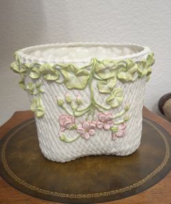 Vintage Italian White Porcelain Basket Weave Floral Cachepot/Planter$45San Diego, CA