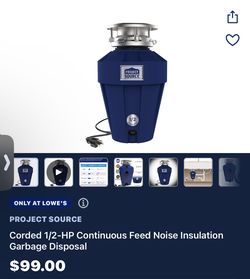1/2 HP Garbage Disposal (104.19.G)$60San Antonio, TX