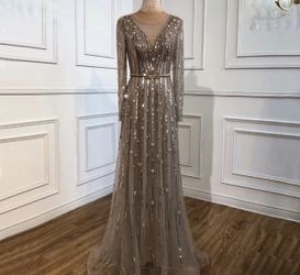 Womens Formal Gold Long Sleeves Beaded Prom Homecoming Evening Dress Size 4-6$300Homer Glen, IL