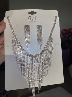 Silver Rhinestone Necklace & Earrings Set$10Tinley Park, IL