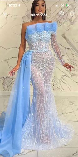Womens Custom Light Blue Mermaid Homecoming Prom Evening Dress Size Small 2-4 $650Orland Park, IL