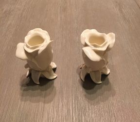 Vintage Set Of 2 Lenox Rose Flower Shaped White Candlesticks 3’$30Haverhill, MA