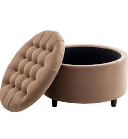 Wovenbyrd Classic 28-Inch Wide Button Tufted Round Storage Ottoman Footstool with Lift Off Lid, Light Brown Velvet$65Wyandanch, NY