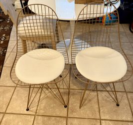 Gold Metal Wire Modern Armless Pair Of 2 Chairs With White Upholstered Seat $40Wyandanch, NY
