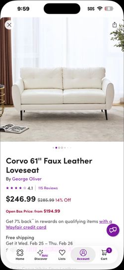 Corvo 61" Faux Leather Loveseat$175Oklahoma City, OK
