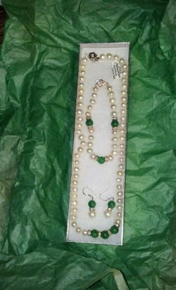 Pearl & Jade Necklace W/Matching Earrings & Bracelet. $100Lakeside, CA