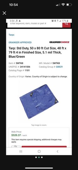 Tarp: Std Duty, 50 x 80 ft Cut Size, 48 ft x 79 ft 4 in $30Bakersfield, CA