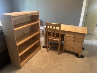 SoldSolid wood Desk, Chair And Bookshelf Set - Tradewins$250Woodinville, WA