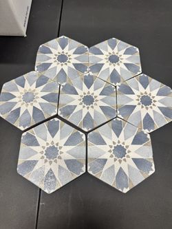 Tabarka Studio Handmade Terracotta Tile Zaha Hexagon 5” White Blue$9San Diego, CA