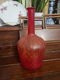 Vintage Red Glass Bottle Vase | Cranberry Glass Decorative Bottle | Mid-Century Style Home Décor$78Stockton, CA