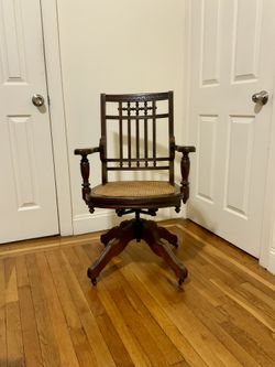 Vintage 1885’s Victorian Office Desk Chair Cane Seat Antique Cast iron Walnut Adjustable swivel and tilt Late Mid Century furniture$1Bronx, NY