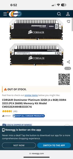 Corsair Dominator Platinum 32GB (4 x 8GB) DDR4 3333 RARE! Originally $485$146Las Vegas, NV