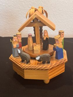 Vintage Hand Carved Wooden Nativity Scene Music Box Plays Silent Night Works$45Cool, TX