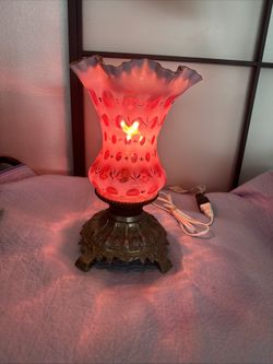 Vintage Fenton Opalescent Coin Dot Cranberry Charelton Design Lamp.$195Cool, TX