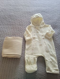 Baby Hooded Coverall Romper 6-9 Months And Baby Blanket$15El Paso, TX