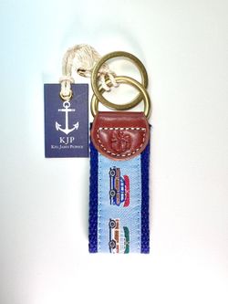 NEW Kiel James Patrick Beach Traffic Key Fob / Key Chain Leather Brass Canvas$25Miami, FL
