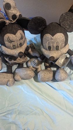 Disney Parks Minnie Mouse And Mickey Black & White Denim15" Plush Doll - Tagged$100Whittier, CA