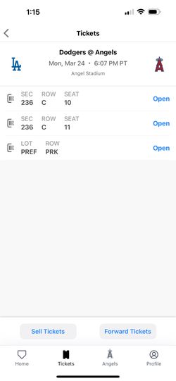 Dodgers vs. Angels Tickets 3/24/25 (Mon)$110Whittier, CA