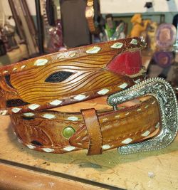 hand tooled leather belt and buckle.$50Hualapai, AZ