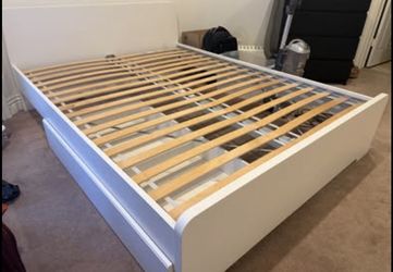 White IKEA Bed Frame with Slats & Underbed Storage (Great Condition)$200Hemet, CA