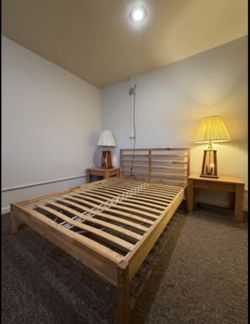 Solid Pine Bedroom Set - IKEA TARVA Bed Frame - Wooden Night Stands + Vintage Lamps (included)$250Hemet, CA