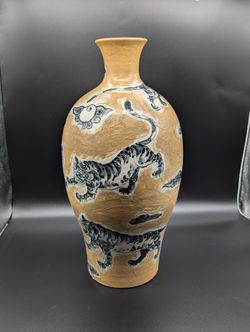 16" Bat Trang Vietnam Ceramic Vase White Tiger Handpainted Handmade$80Silver Spring, MD