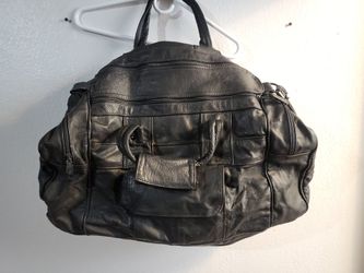 Leather Bag Duffle Black Weekender Vtg Vintage Travel Suitcase$40Fresno, CA