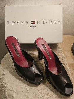 Tommy Hilfiger Black Leather Slip On Peep Toe Heels 6M$17Inglewood, CA