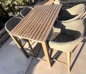 Allen + Roth Patio Furniture Benton Ridge Rectangle Outdoor Dining Table & 4 pc set Woven dining stationary chair set