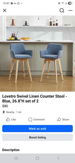 Lovetro Swivel Linen Counter Stool - Blue, 26.8"H$80Tolleson, AZ