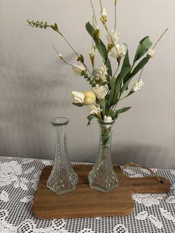 Lot of 2 Hobnail Knobby Pattern Clear Glass Vases EO Brody USA 6" Tall$25Wlks Barr Township, PA